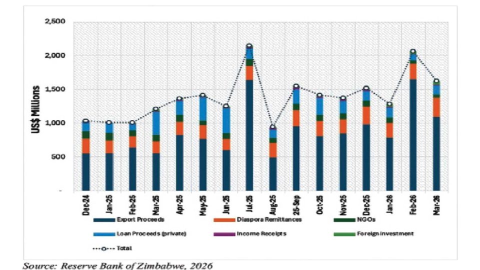 ZIMBABWE recorded a sharp rise in foreign currency inflows in the first quarter of 2026, as strong export earnings and resilient remittances helped deliver sustained external surpluses, according to the Reserve Bank of Zimbabwe (RBZ).